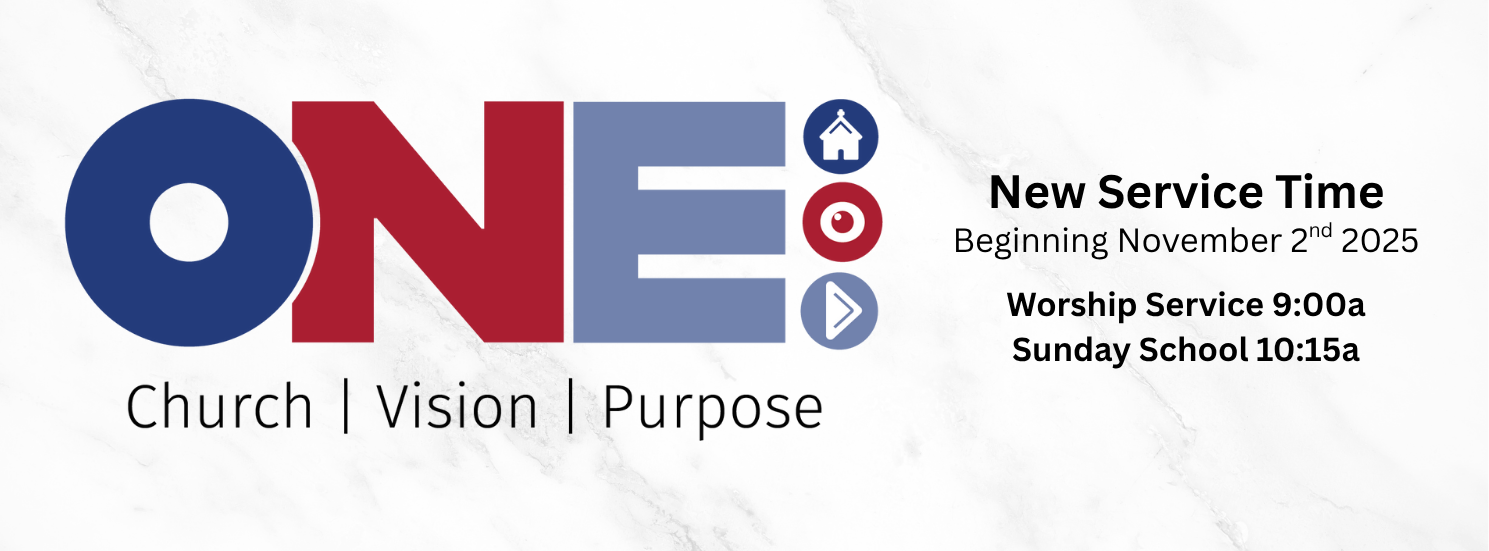 Beginning November 2, 2025, we will have one worship service at 9:00a and Sunday School will be at 10:15a.